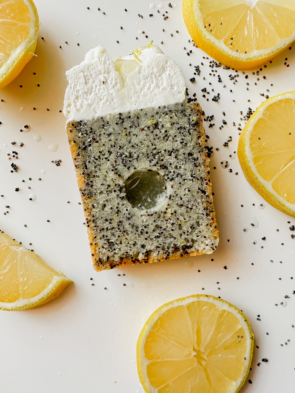 6. Лимон-мак(лимонно-маковый кекс, насыщенный лимонный гель, лимонная пропитка, сливочный крем с ванилью)