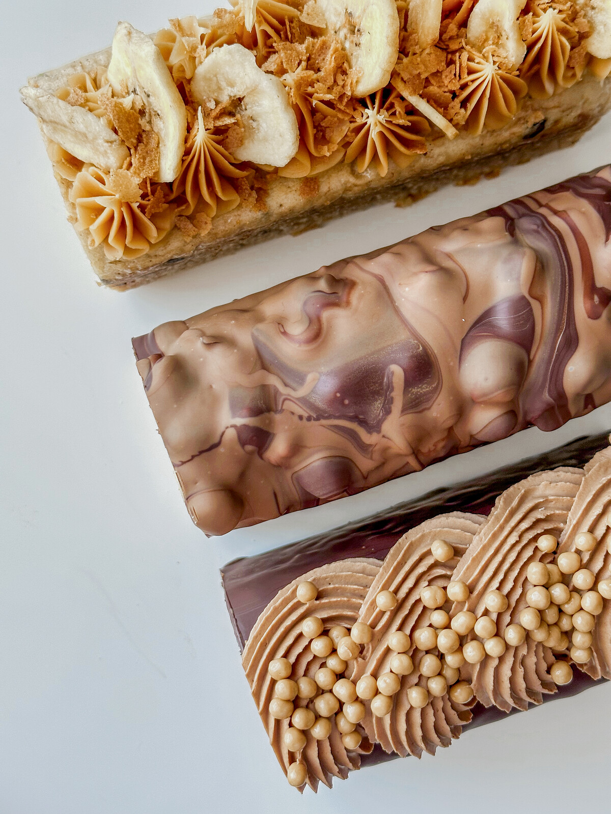 1. Банан-шоколадные капли (банановое тесто, карамельный ганаш)